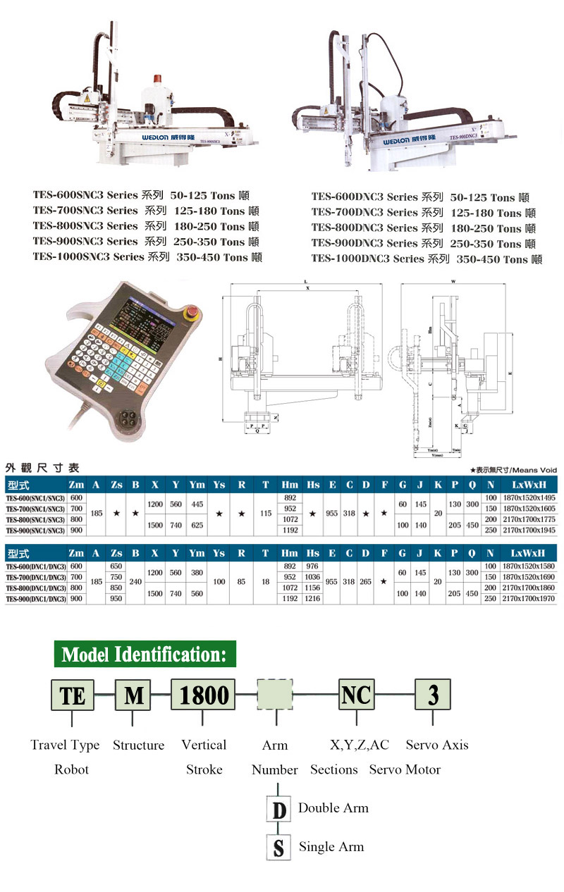 Servo Injection Molding Robot - Middle Servo Traverse Type Robot Arm (TEM-SNC3P/DNC5P Series)