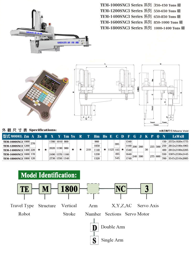 中型サーボ横走行式取出ロボット、350T ~ 1800Tプラスチック射出成形機に広く応用されています。