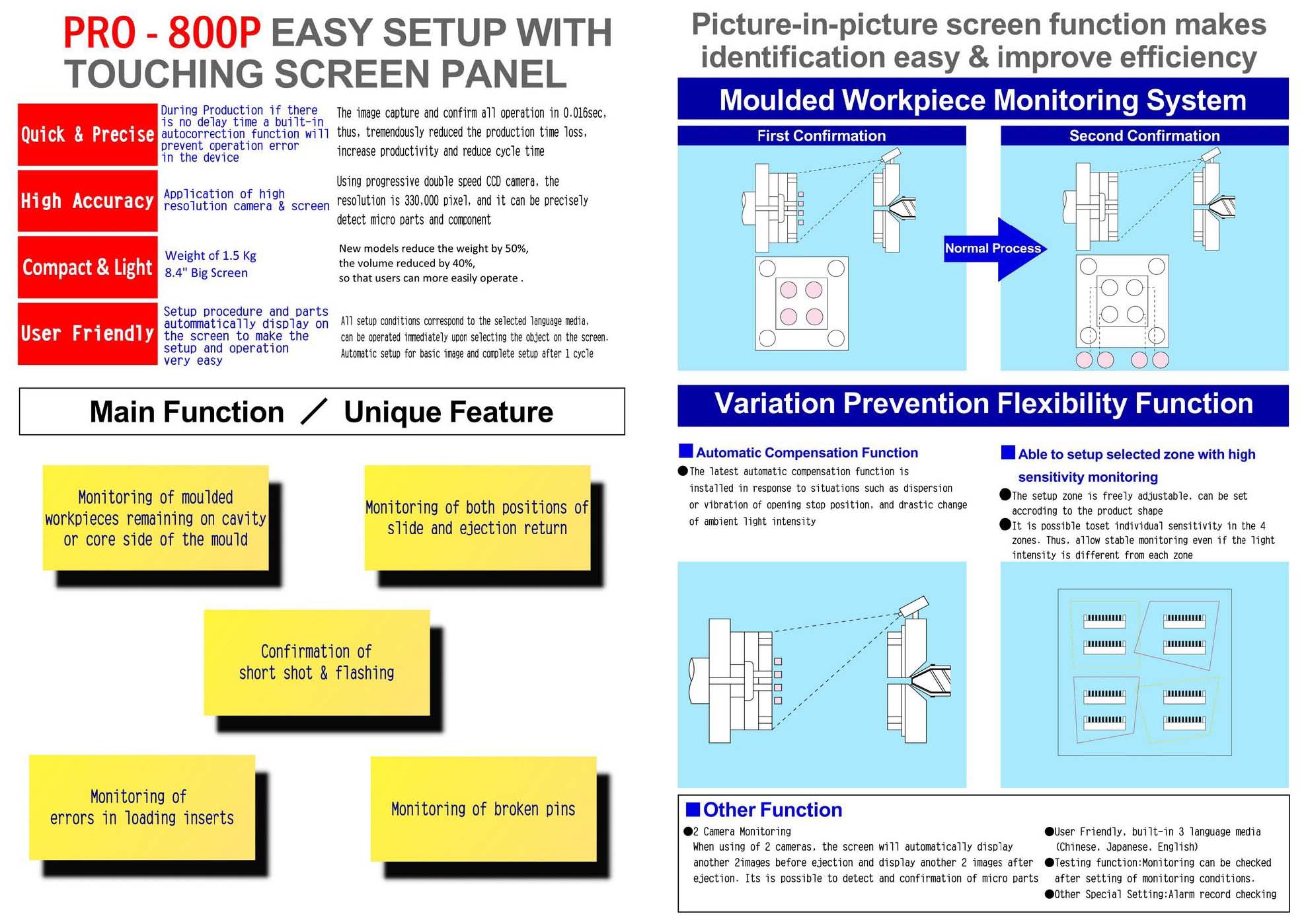1. When the mold opening position is unstable and vibration, or the surrounding brightness changes rapidly, it is equipped with automatic correction function.