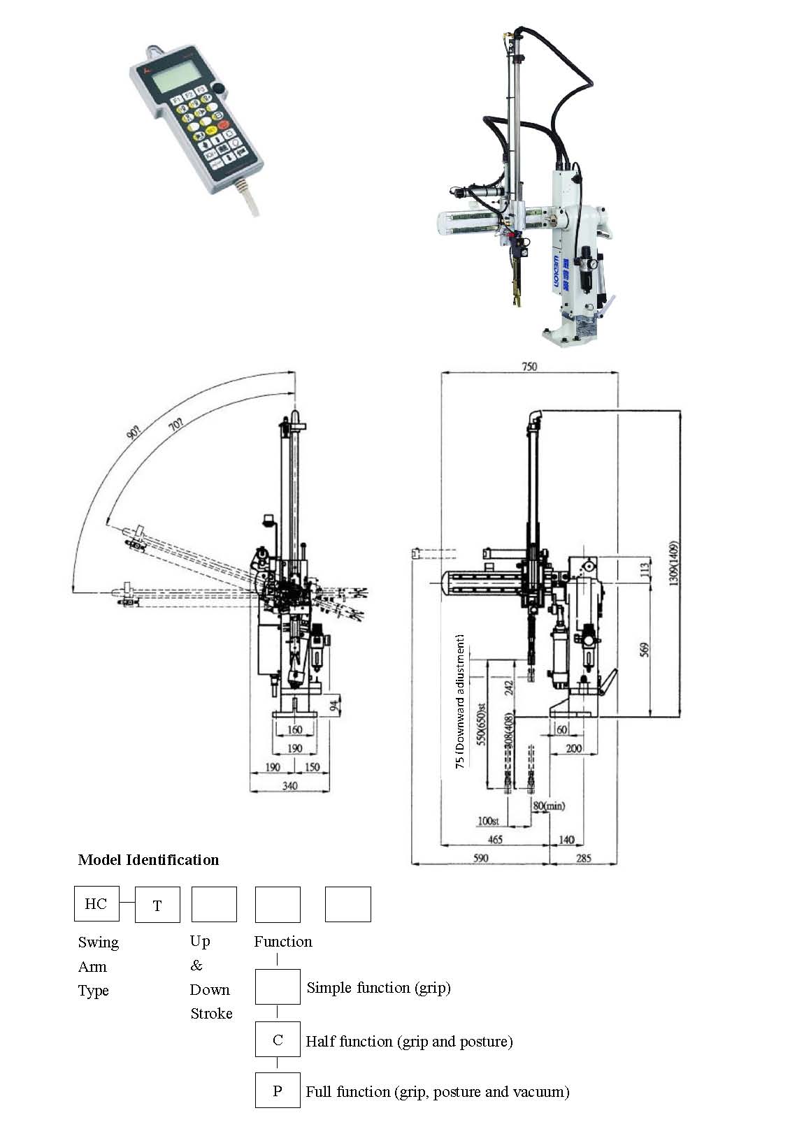 Sprue Picker-Swing Arm Robot is extensively applied to plastic injection molding machine 25T ~180T.